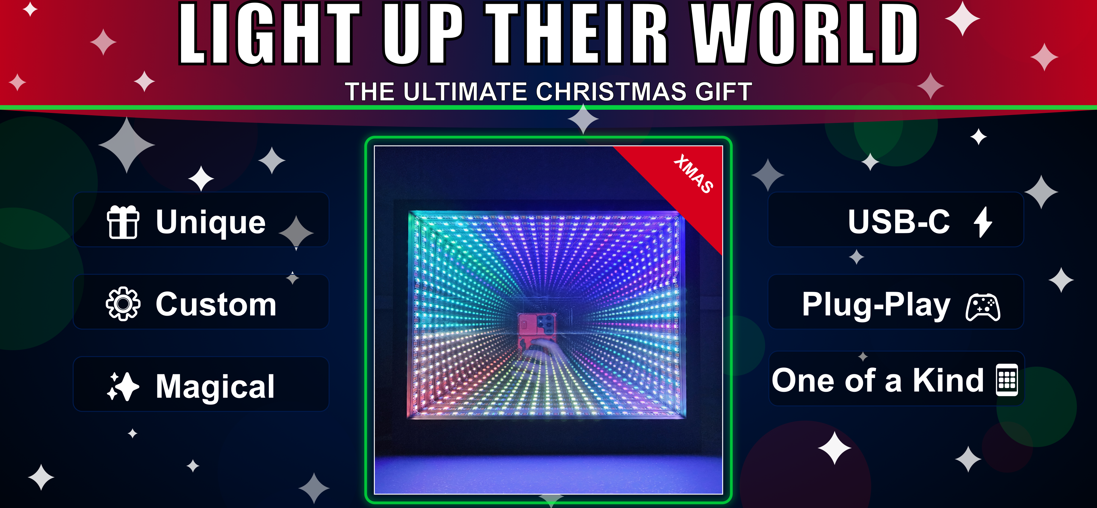Christmas Infinity Mirror + Insert | Change Colors and Effects | 3D Optical Illusion Tunnel Light